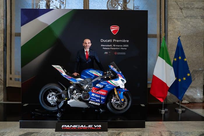 La presentazione si è svolta nel Salone degli Arazzi a Palazzo Piacentini a Roma. Tale sede del MIMIT è un simbolo dell’eccellenza imprenditoriale italiana. Claudio Domenicali, AD Ducati, ha presentato la moto. Era presente il Ministro Adolfo Urso.