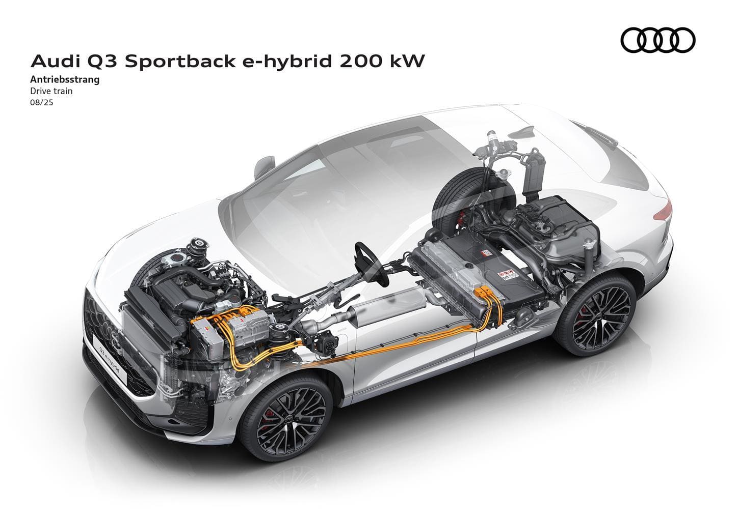 Il fiore all’occhiello è la variante plug-in e-hybrid di Audi Q3 Sportback, con una potenza complessiva di 272 cavalli. Accelera da 0 a 100 km/h in 6,8 secondi. L’autonomia elettrica raggiunge i 118 chilometri WLTP, un riferimento per la categoria.