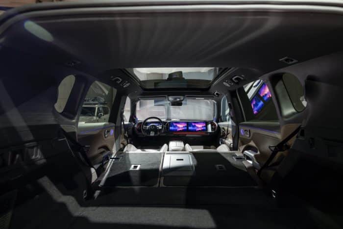 L’abitacolo combina design moderno e materiali premium. I sedili posteriori sono riscaldati e regolabili elettricamente. Le luci LED da lettura e l’illuminazione ambientale a 256 tonalità creano un’atmosfera esclusiva. Il chipset AMD V2000 alimenta un’interfaccia intuitiva. Include un head-up display AR da 25,6 pollici e due display OLED da 13 pollici.