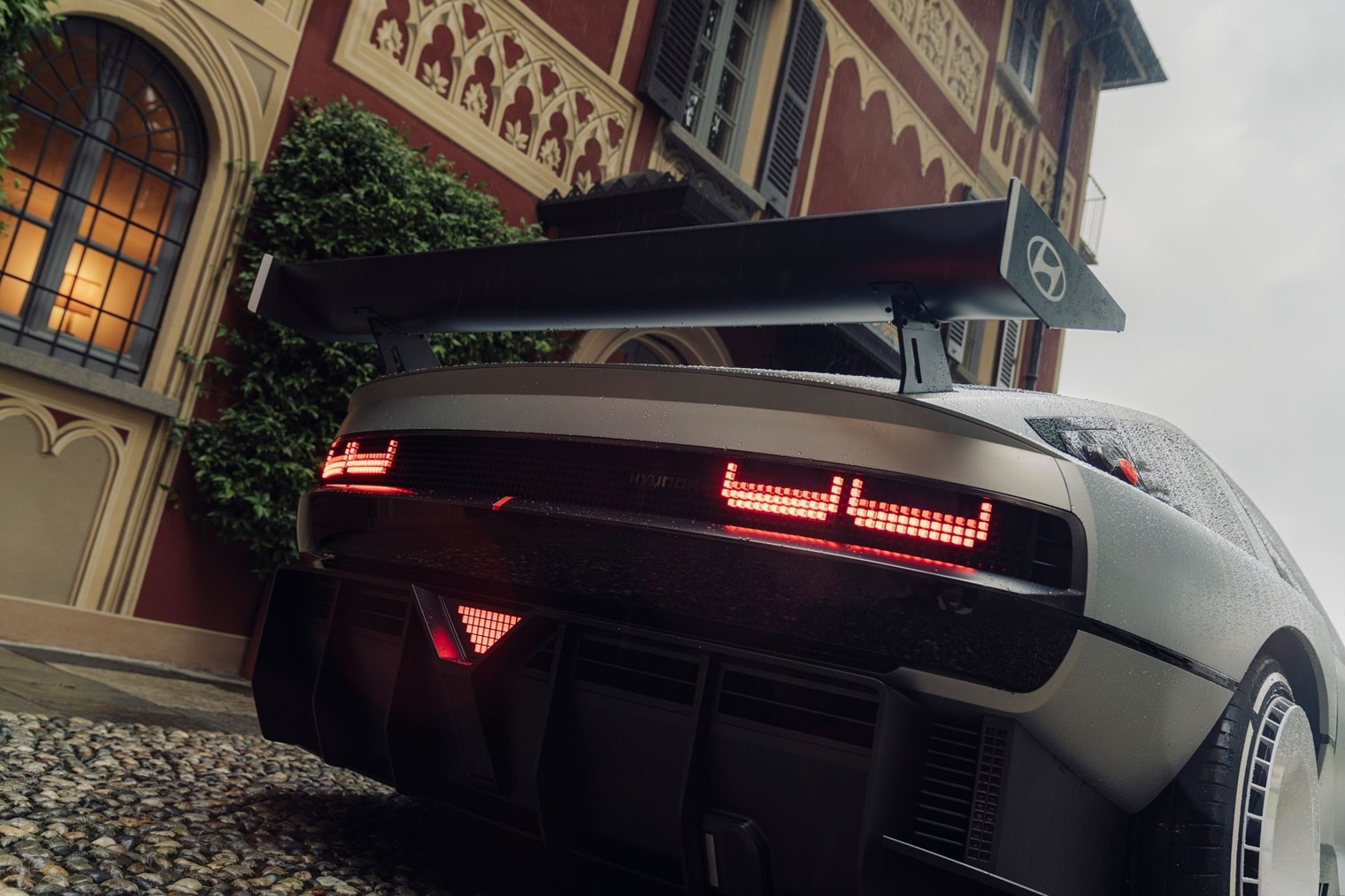 Le linee tese richiamano la Hyundai Pony Coupé Concept del 1974 firmata dal maestro Giorgetto Giugiaro attraverso volumi scolpiti e superfici pure.